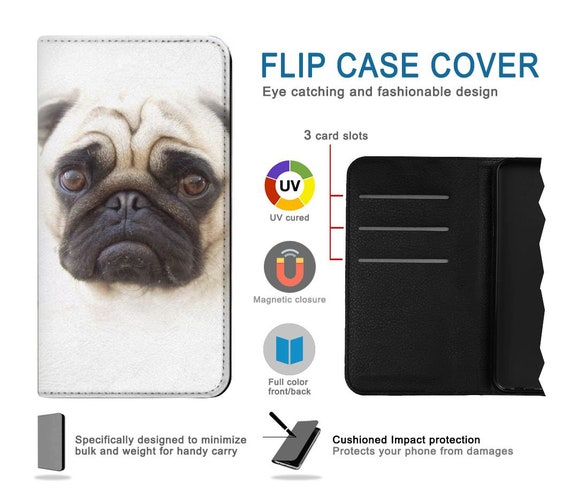 Pug Dog Hard Leather Flip Case Iphone 14 Pro Max Plus Etsy Mexico